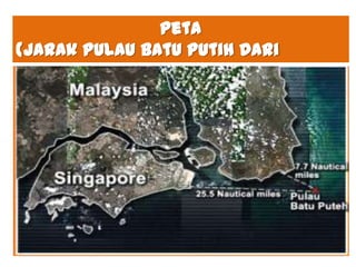 JOHOR BAHRU- Kehilangan Pulau Batu Puteh atau Pedra Branca memungkinkan Singapura bakal meneruskan tuntutannya kepada lain- lain wilayah yang berada dalam radius. 14 Oktober 2021 152 pm. Artikel asal disiarkan pada 9 Februari 2017 UPDATE 15 October 2021.
